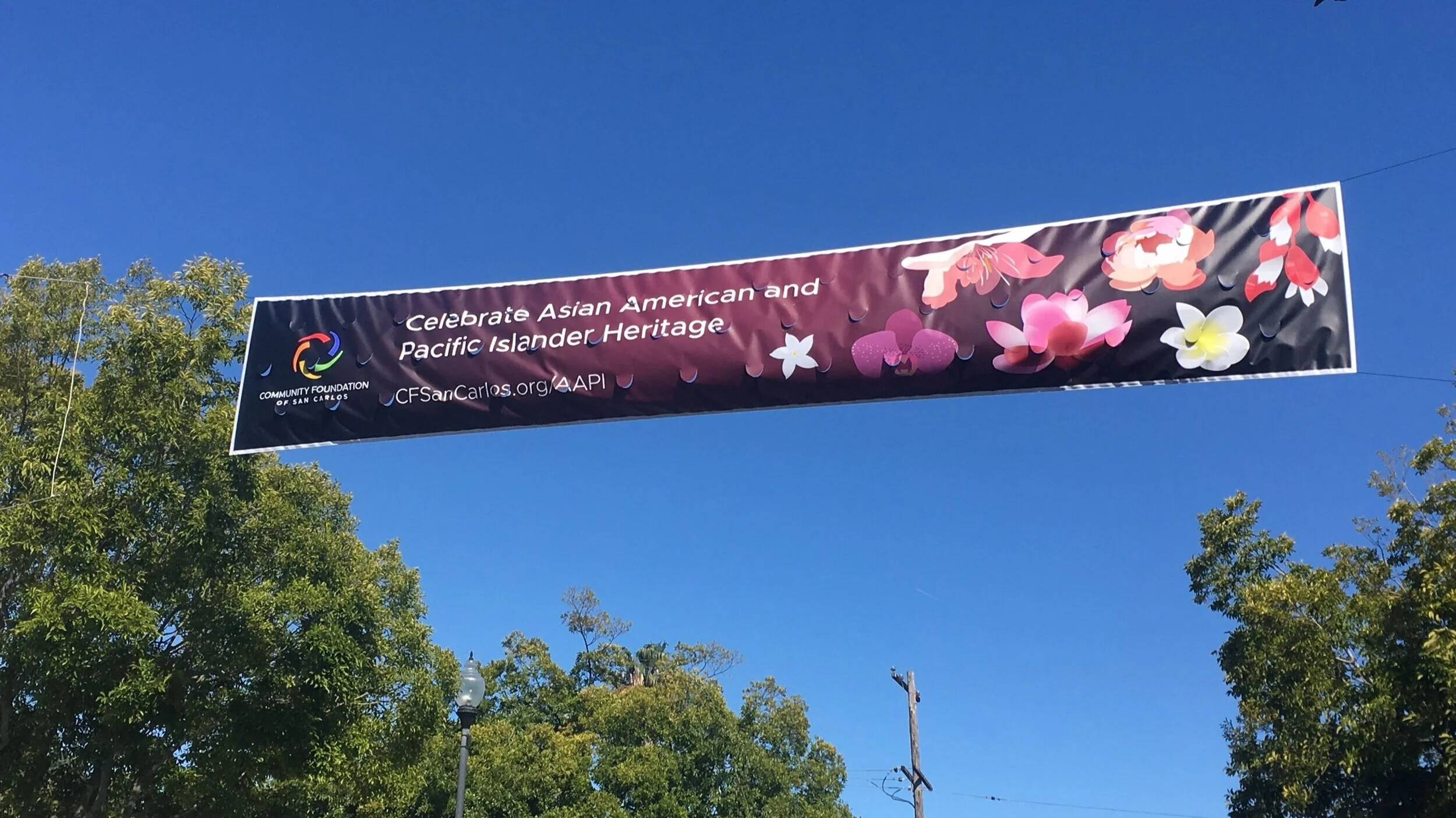 The Community Foundation of San Carlos is hosting a banner across Laurel Street from October 4 - 10, 2021.